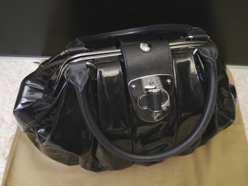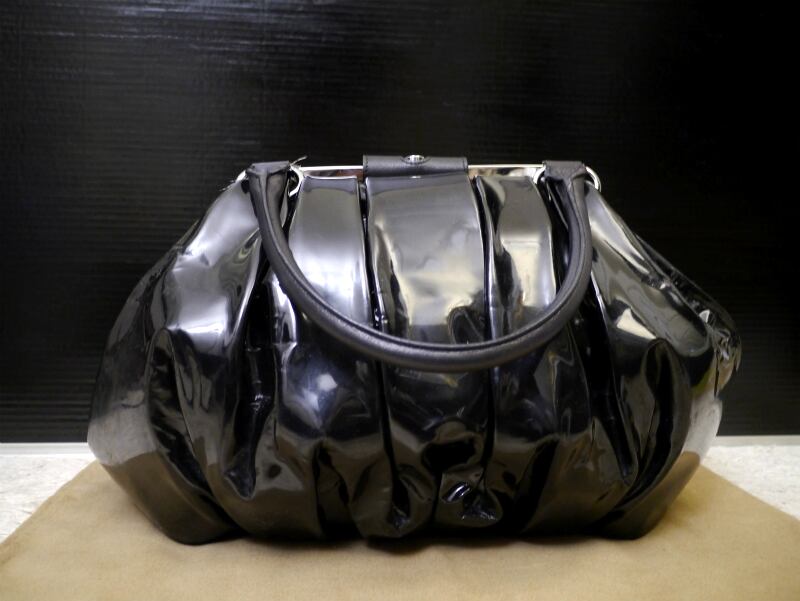 Alexander McQUEEN(アレキサンダー マックイーン) ターンロック がまぐちデザイン プリーツ パテントレザー トート ハンド バッグです。
