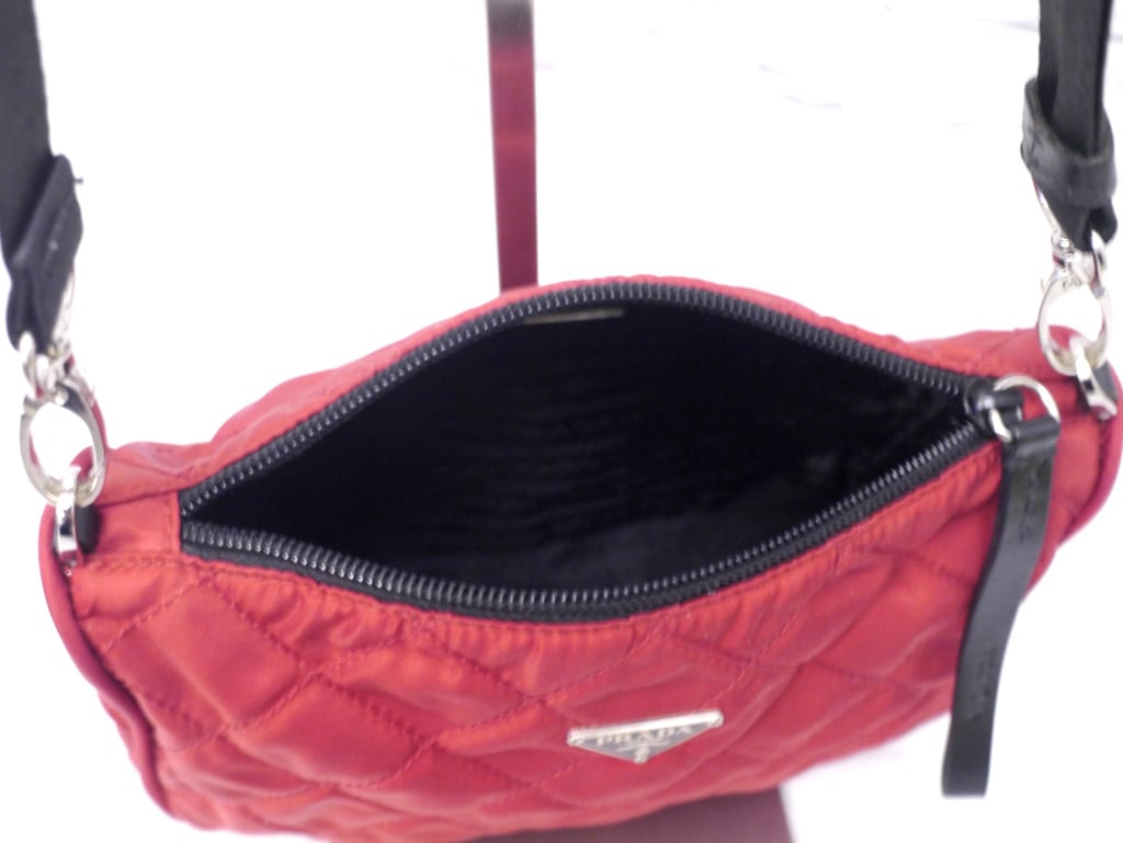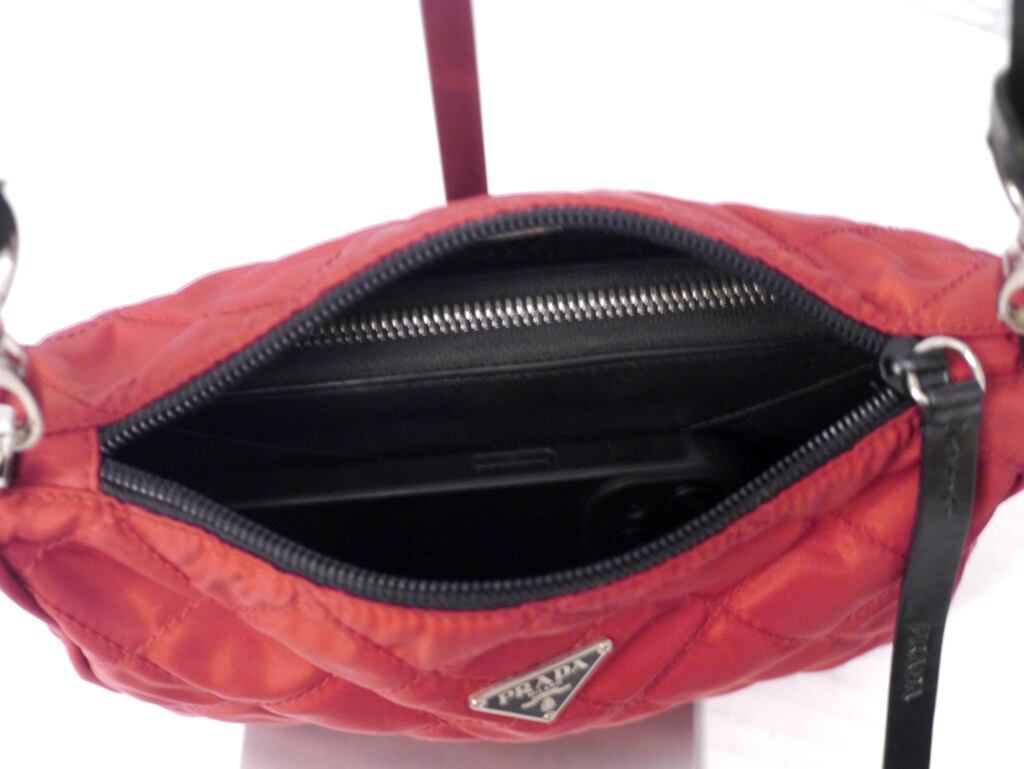 美品◆ PRADA プラダ キルティング テスート ナイロン クロスボディ ショルダー バッグ カメラ バッグ ポーチ ポシェット 赤黒◆レアモデル