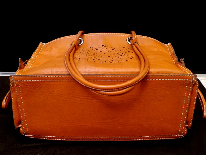 上品なアプリコットブラウンのレザーに、大きなロゴや現行FLAMENCOにも継承されるサイドアジャスター仕様の独特な形状がさりげなく主張する定番ラインで、合わせやすく大変使い勝手の良いモデルです。