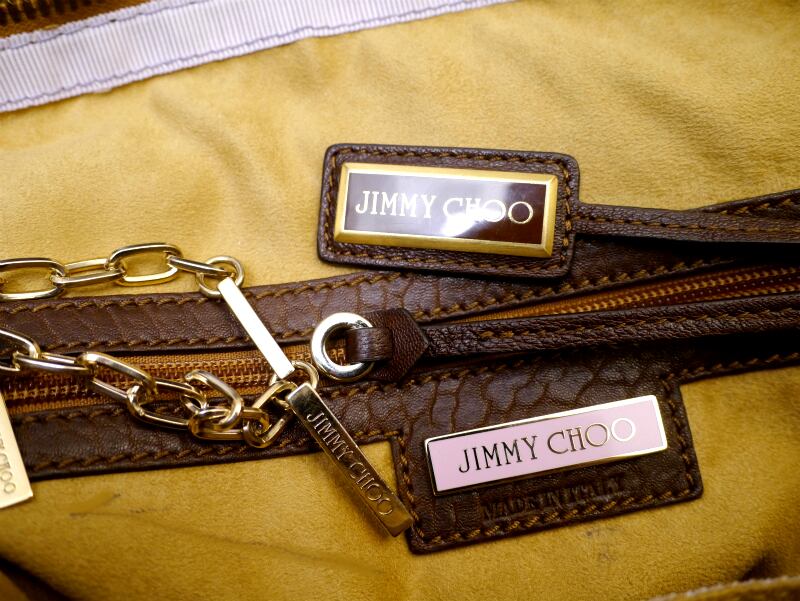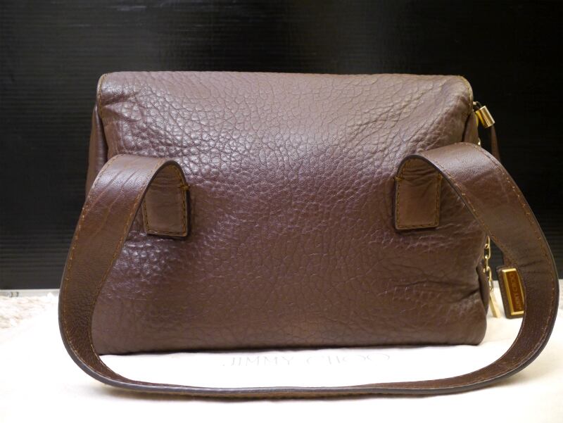 レア18万★JIMMY CHOO ジミーチュウ クラシック A4対応 ビジネス可 ミニボストン型 レザー トート バッグ 茶★ 通勤通学にも大活躍のA4対応