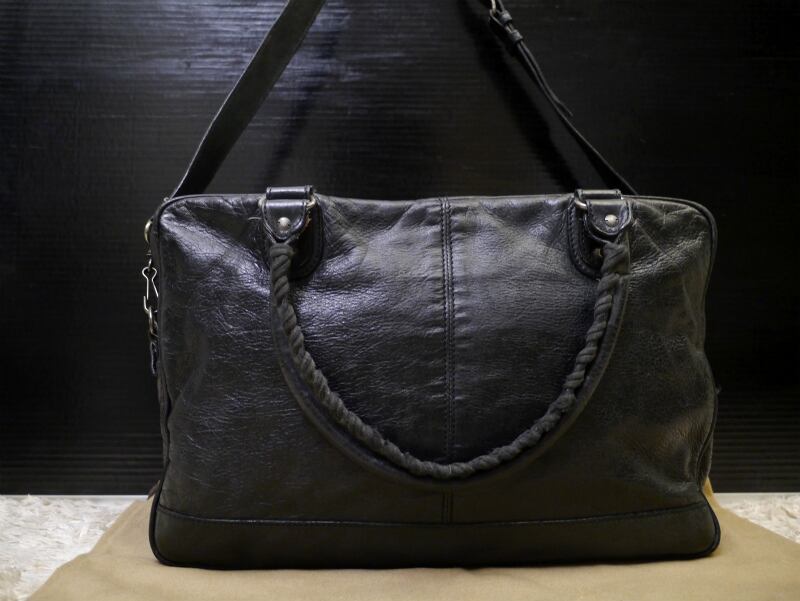 ※若干の使用感(軽微な擦れ、内側を中心に薄ら汚れ、ハンドル微妙にホツレ、ストラップ先端に擦れ傷等)は見られるものの元々ヴィンテージ加工のレザーです。使用に支障の出るようなダメージはなくまだまだご使用頂ける状態だと思いますが、あくまでも中古品なので中古品にご理解のない方はご遠慮願います。