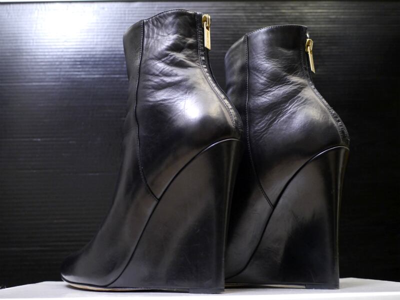 美品13万◆JIMMY CHOO ジミーチュウ ウェッジソールインヒール レザー ショート ブーツ ブーティ 黒37◆ 合わせやすい秋冬の主役アイテム♪