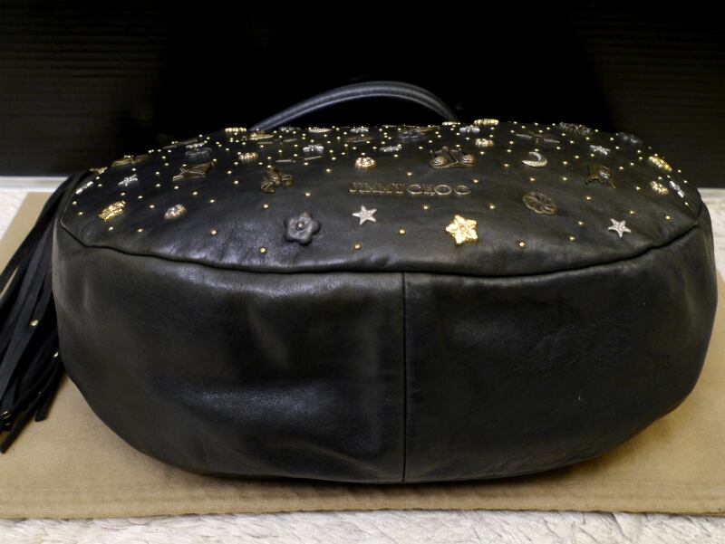 美品★JIMMY CHOO ジミーチュウ Zodiac ゾディアック 星座 スタッズ フリンジチャーム レザー トート バッグ 黒★ 星座スタッズが個性的♪
