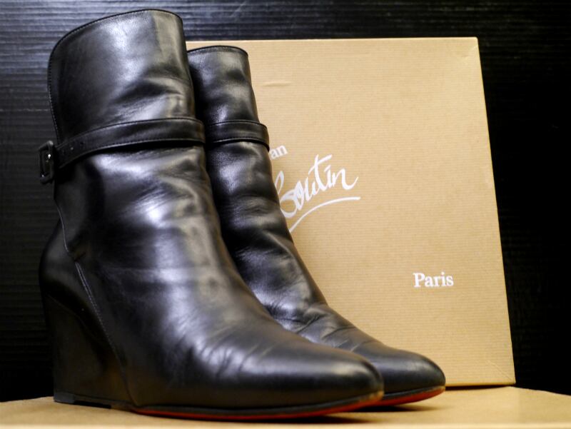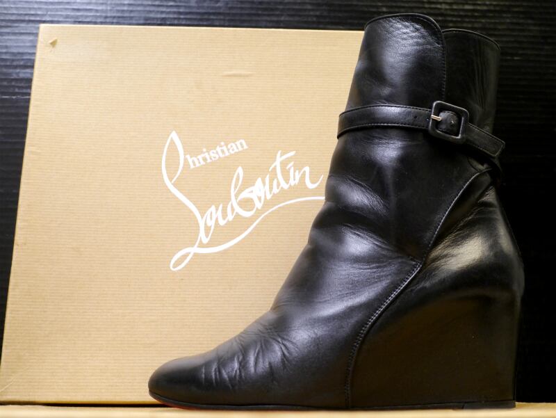 12万★ChristianLouboutin クリスチャンルブタン ROSSIGNOL ウェッジソール レザー ショート ブーツ 黒 38★ 飽きのこない定番の万能モデル