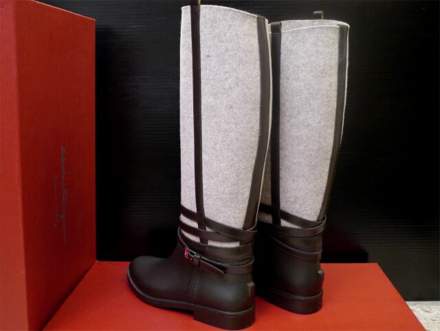 展示品◆SalvatoreFerragamo サルヴァトーレフェラガモ ハイブリッド 縮絨ウールxラバー ロング ブーツ 7◆ 冬場に大活躍の異素材MIXモデル