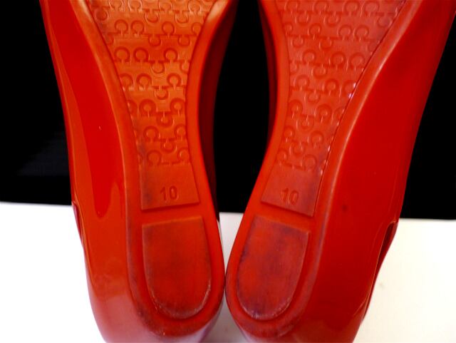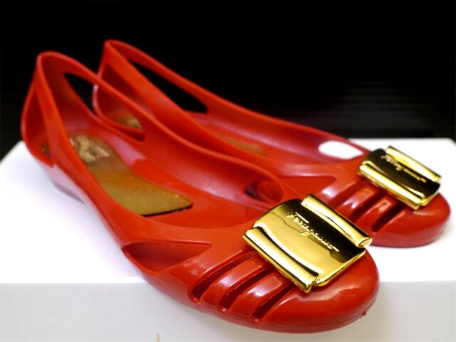 2018美品◆Salvatore Ferragamo サルヴァトーレフェラガモ ガンチーニ ラバー フラット パンプス 赤10◆ 足元のポイントに大活躍の綺麗色♪