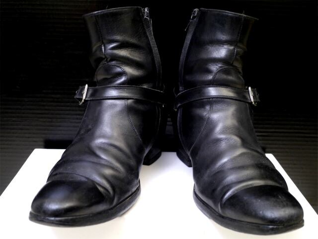 メンズではなかなか見かけないヒールブーツですが、サンローランのジョニーに比べるとだいぶ履きやすい印象です。