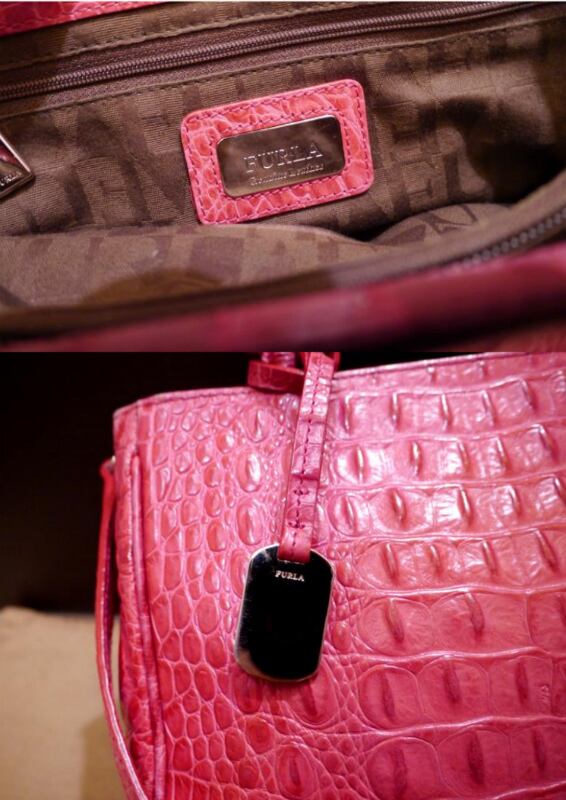 ◆FURLAフルラ クロコ型押 レザー ハンド&ショルダー バッグ◆