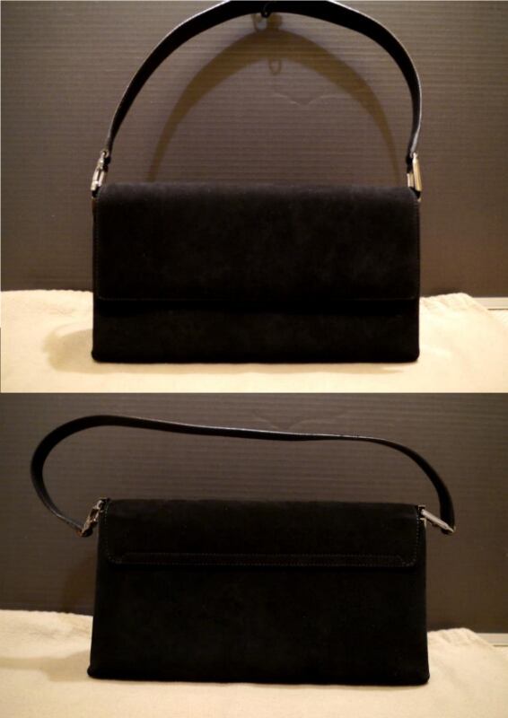上品なブラックのスエードにシルバーの金具がマッチし、フェラガモらしくとてもクールな印象のアイテムです。