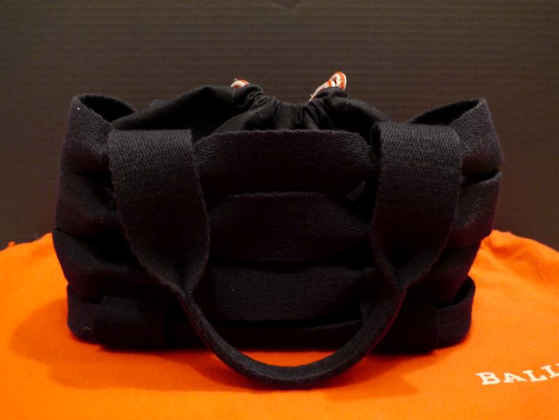極美品◆BALLYバリー キャンパス&レザーレイヤード 巾着バッグ◆