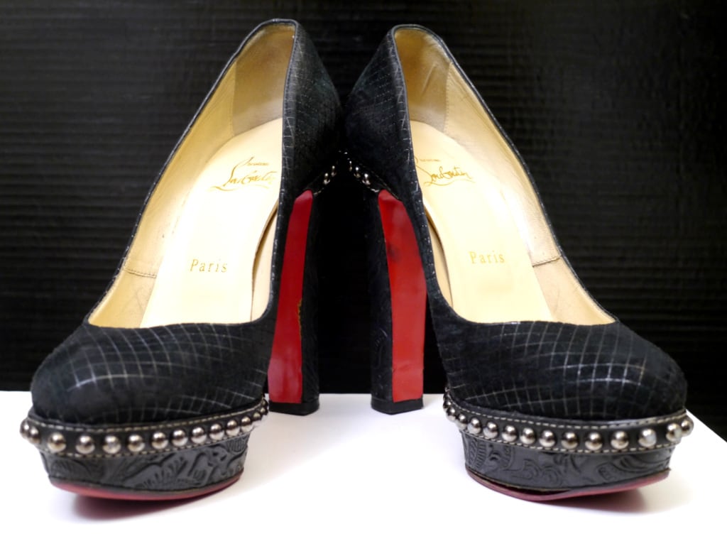 Christian Louboutin(クリスチャンルブタン) スタッズデザイン エンボスヒール スエードレザー プラットフォーム パンプスです。