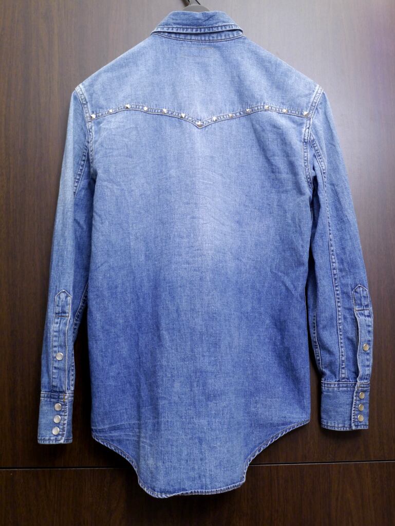 エディスリマンによる第二期サンローランのアイコン的アイテムであったデニムシャツですが、こちらはスクエアスタッズをあしらった希少アイテムです。