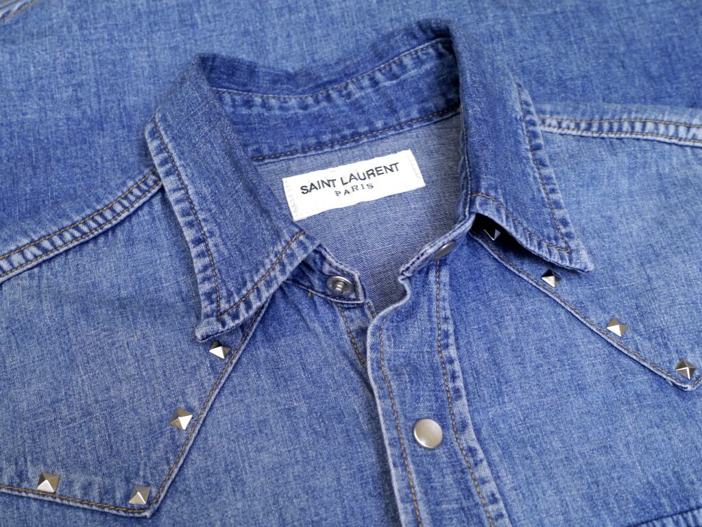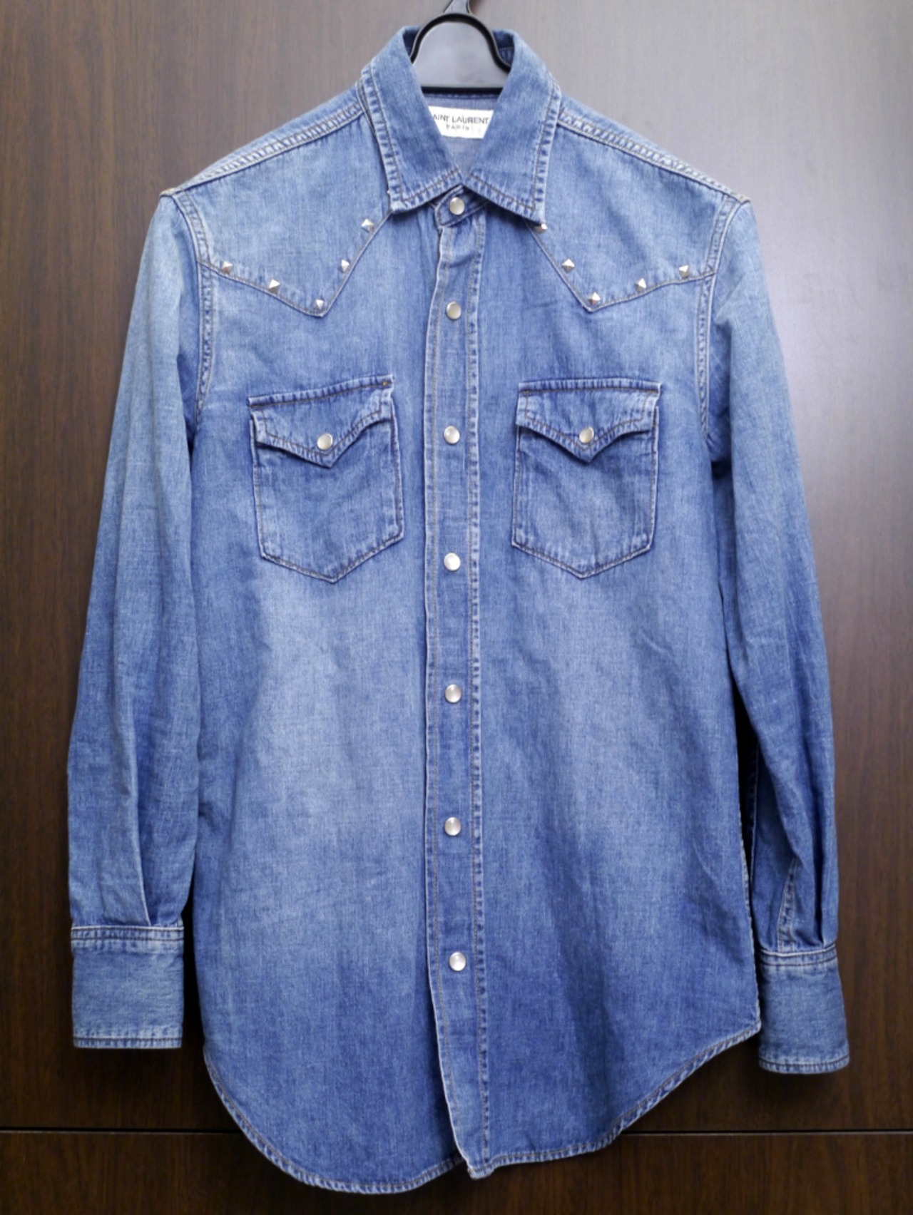 2016美品◆SAINT LAURENT PARIS サンローランパリ スタッズデザイン ウエスタン デニム シャツ 薄青 S◆ スタッズをあしらったレアモデル♪