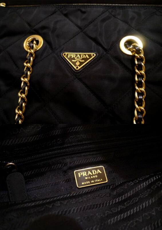 PRADA定番のナイロンバッグですが、こちらはチェーンの色味に合わせ【PRADA】のプレートもゴールドに揃えられた、ありそうでなかなか見かけないアイテムです。