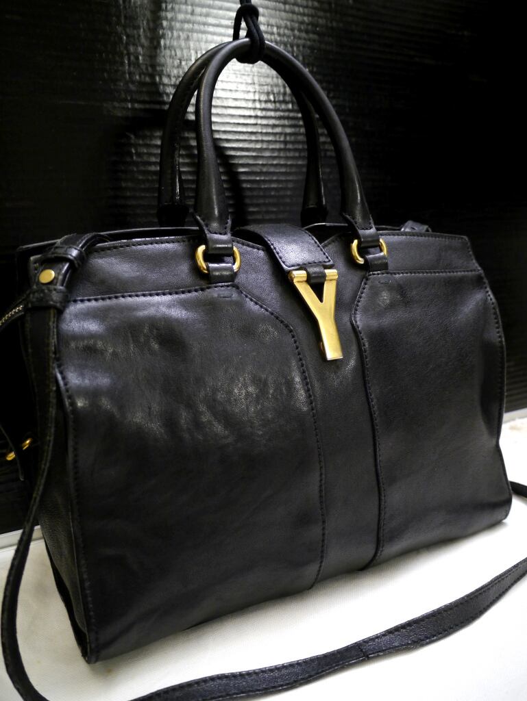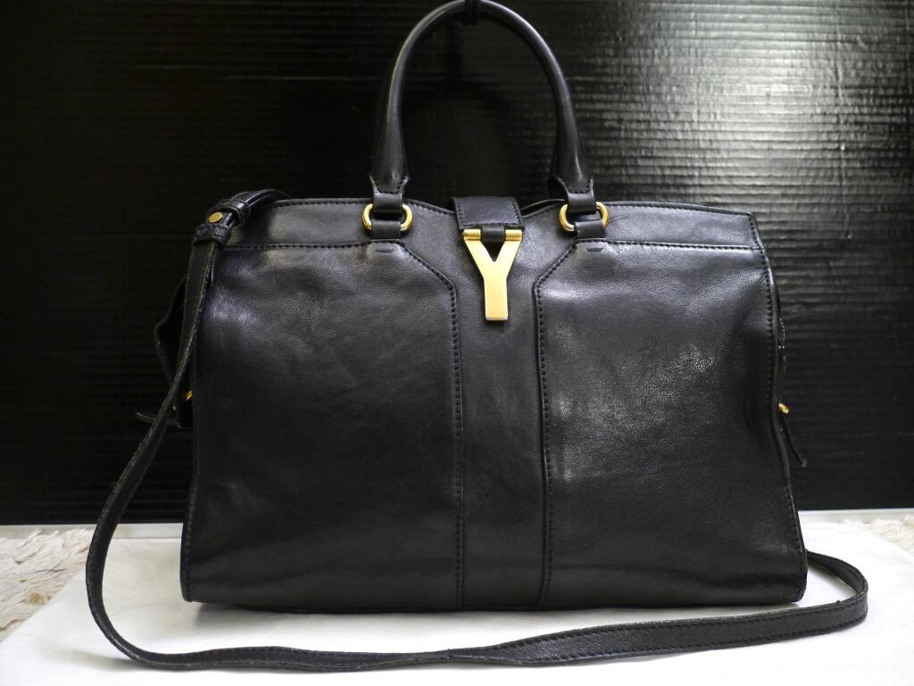 定番◆YvesSaintLaurent イヴサンローラン プチカバス クラシックYライン 2way レザー トート バッグ 黒◆ 時代を超えて愛される定番モデル