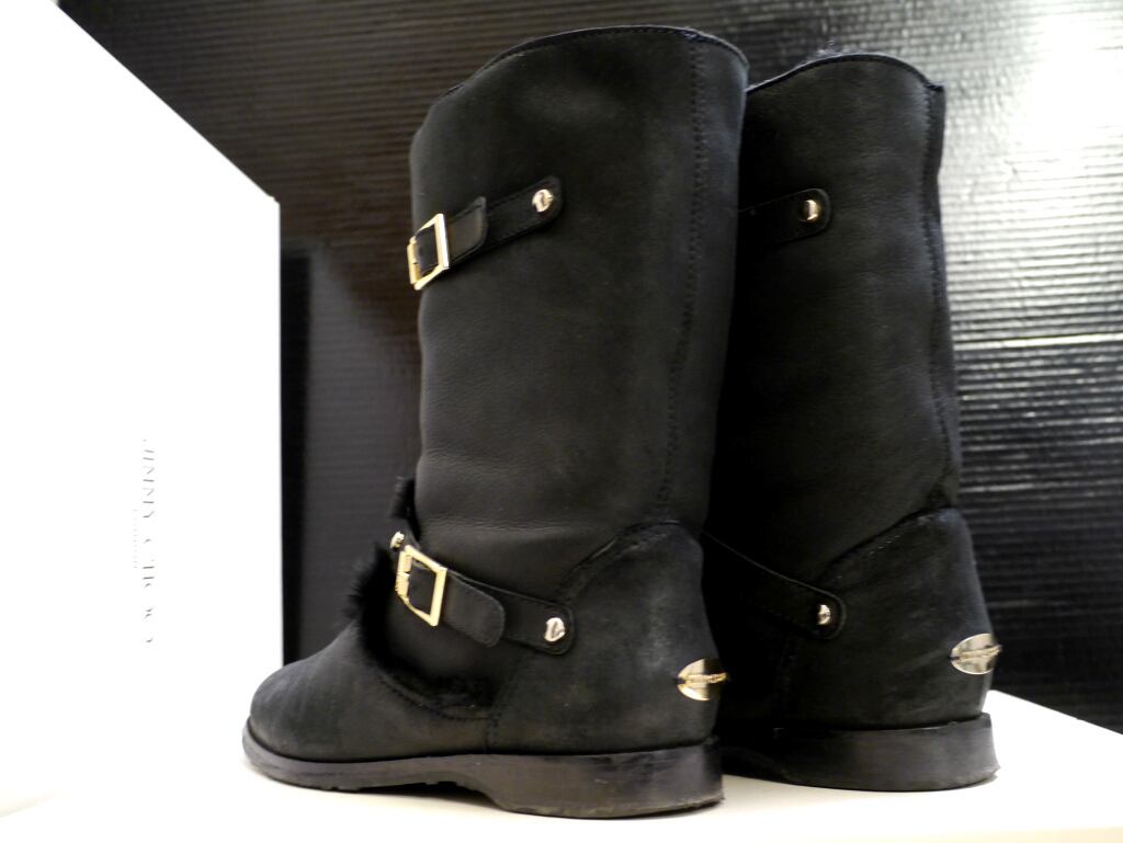 12万★JIMMYCHOO ジミーチュウ 247YOUTH 内ボア仕様 バイカーレザー ショートブーツ 黒37.5★ 内側のボア仕様が真冬の寒さにも難なく対応♪