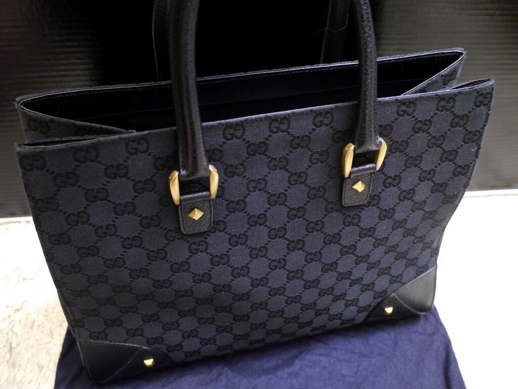美品16万◆GUCCI グッチ GG柄 A4対応 スタッズデザイン キャンバスxレザー トート バッグ 黒◆ スタッズが主張するスタイリッシュなモデル