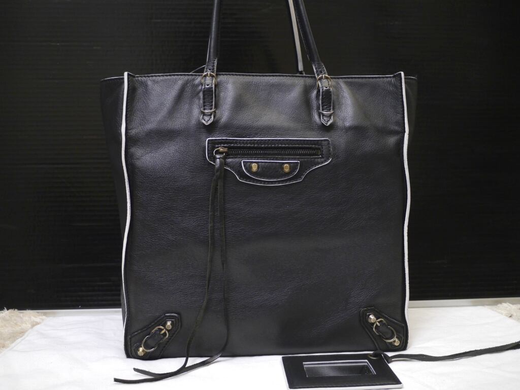 希少カラー◆BALENCIAGAバレンシアガ ミニペーパー レザー トートハンド バッグ 黒x白◆ 2トーンカラーが希少な使い勝手抜群ミニペーパー♪