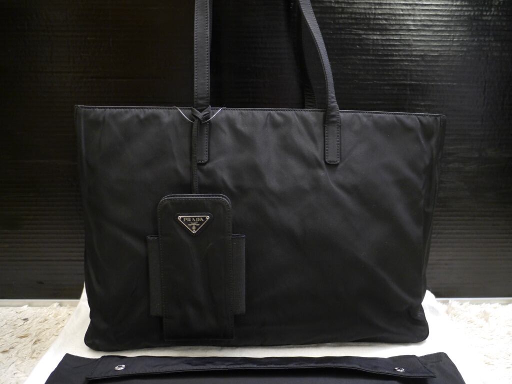 レア◆PRADA プラダ 男女可 A4対応ビジネス可 大型ポーチ スマホケース付属 ナイロン トート バッグ 黒◆ 書類等も入れやすい秀逸モデル♪
