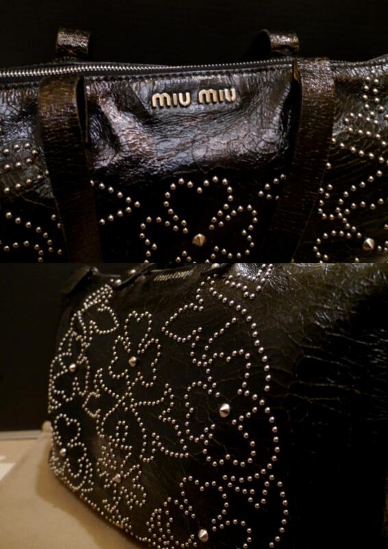 スタッズの中にもさりげなくシルバーの『miumiu』ロゴが輝き、とても可愛いと思います。