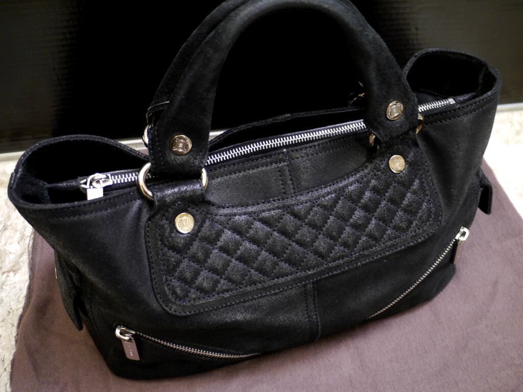 レア美品◆CELINE セリーヌ ブギーバッグ キルティングバイカー ヌバックレザー トート バッグ 黒◆ キルティングが印象的なバイカーライン