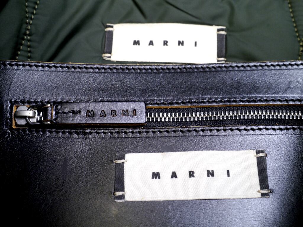 表裏が異素材の異なる配色で切り替えられた面白いデザインで、高級感の中に遊び心を持たせたマルニらしいデザインだと思います。