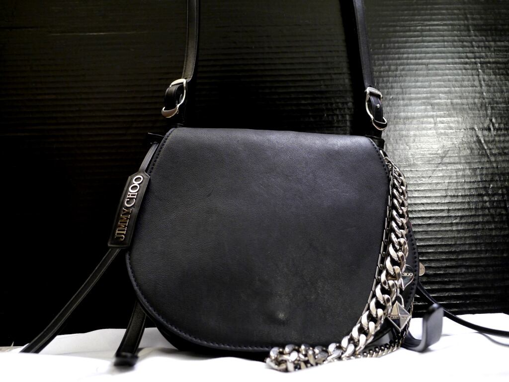美品16万★JIMMY CHOO ジミーチュウ BECKA 男女可 バイカー クロスボディ レザー ショルダー バッグ 黒★ BECKAから希少なバイカーモデル♪