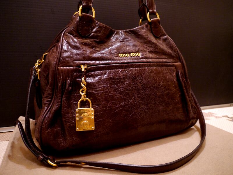 miumiu(ミュウミュウ) パドロックチャームデザイン ハンド・ショルダー2way レザー バッグです。