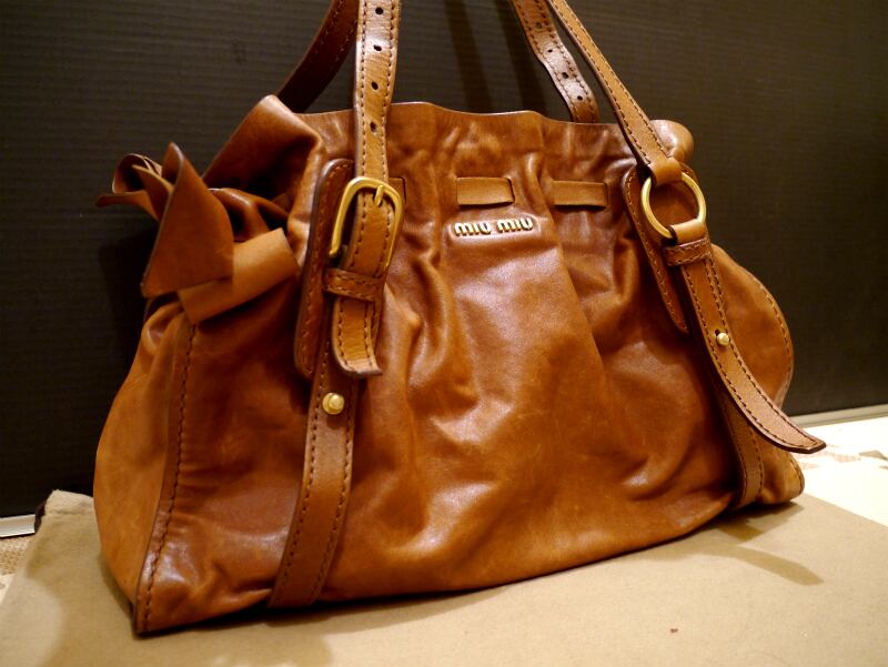 ★miumiu ミュウミュウ リボン ハンドショルダー レザー バッグ 茶★