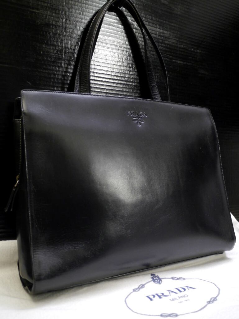 美品◆PRADA プラダ A4対応 ビジネス可 ユニセックス レザートート ハンド ビジネス バッグ 黒◆ 高級感溢れるビジネス対応のレザーモデル