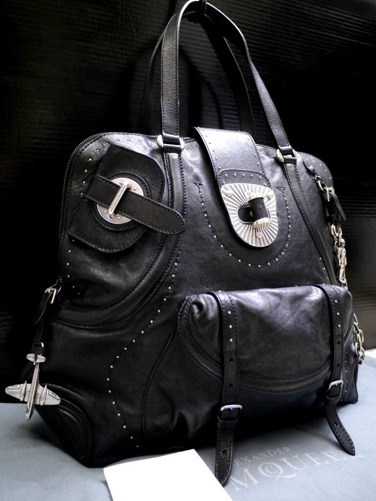 故・マックイーン時代のバッグで、エッジの効いたデザインの中にもイギリス人デザイナーの作品らしくどこか上品さも持ち合わせた時代を超えて愛されるアイテムです。