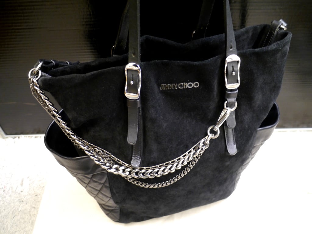 レア24万★JIMMY CHOO ジミーチュウ BLARE 男女可2way チェーンデザイン キルティングスエードレザー トート バッグ★ 3連チェーンバイカー