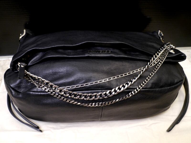 JIMMY CHOO(ジミーチュウ) BIKER SADDLE CHAIN CROSSBODY SATCHEL ユニセックスモデル 3連チェーンデザイン レザー バイカー サッチェル トート バッグです。