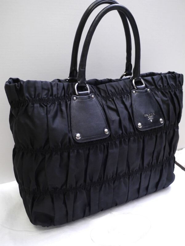PRADA(プラダ) ギャザーデザイン ナイロンxレザー切替 トート ハンド バッグです。