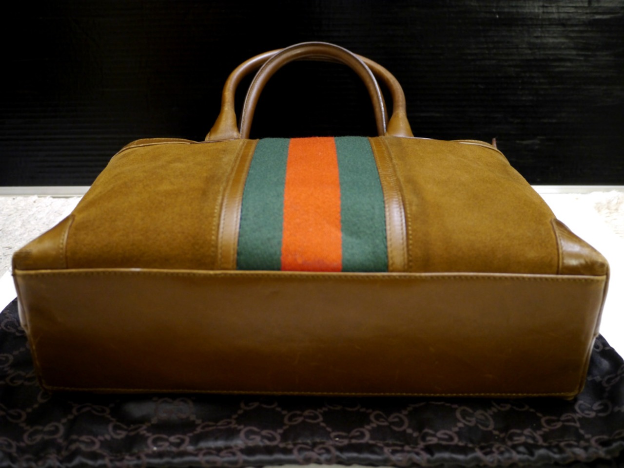 レア20万◆GUCCIグッチ シェリー レザーxスエード切替 トート ハンド バッグ キャメル◆ 赤x緑が主張するシェリーの希少なスエードモデル♪