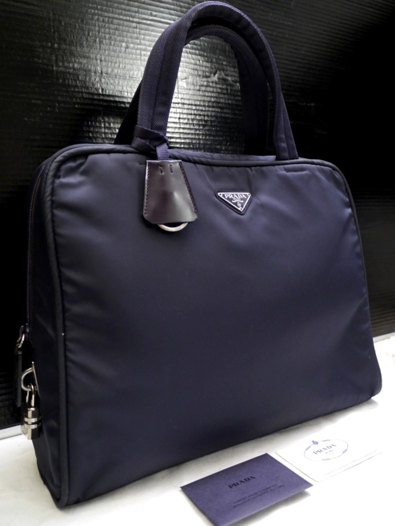 美品14万◆PRADA プラダ 男女可 A4対応ビジネス可 ハンド バッグ ブリーフ ケース 紺◆ 時間を経ても色褪せることのないビジネス対応モデル