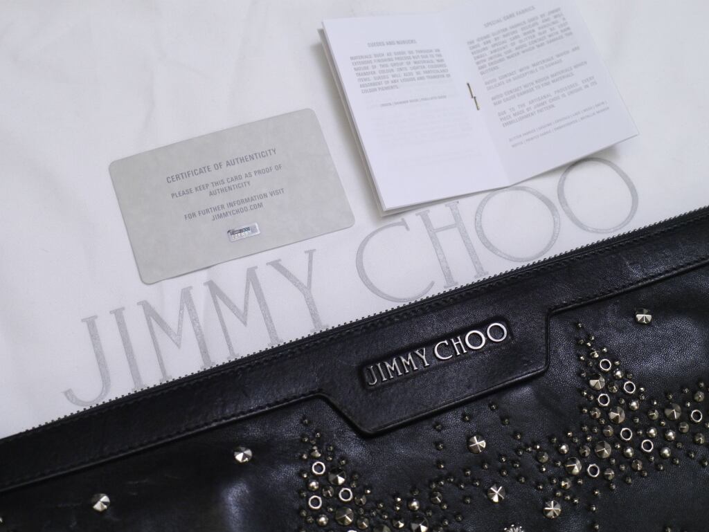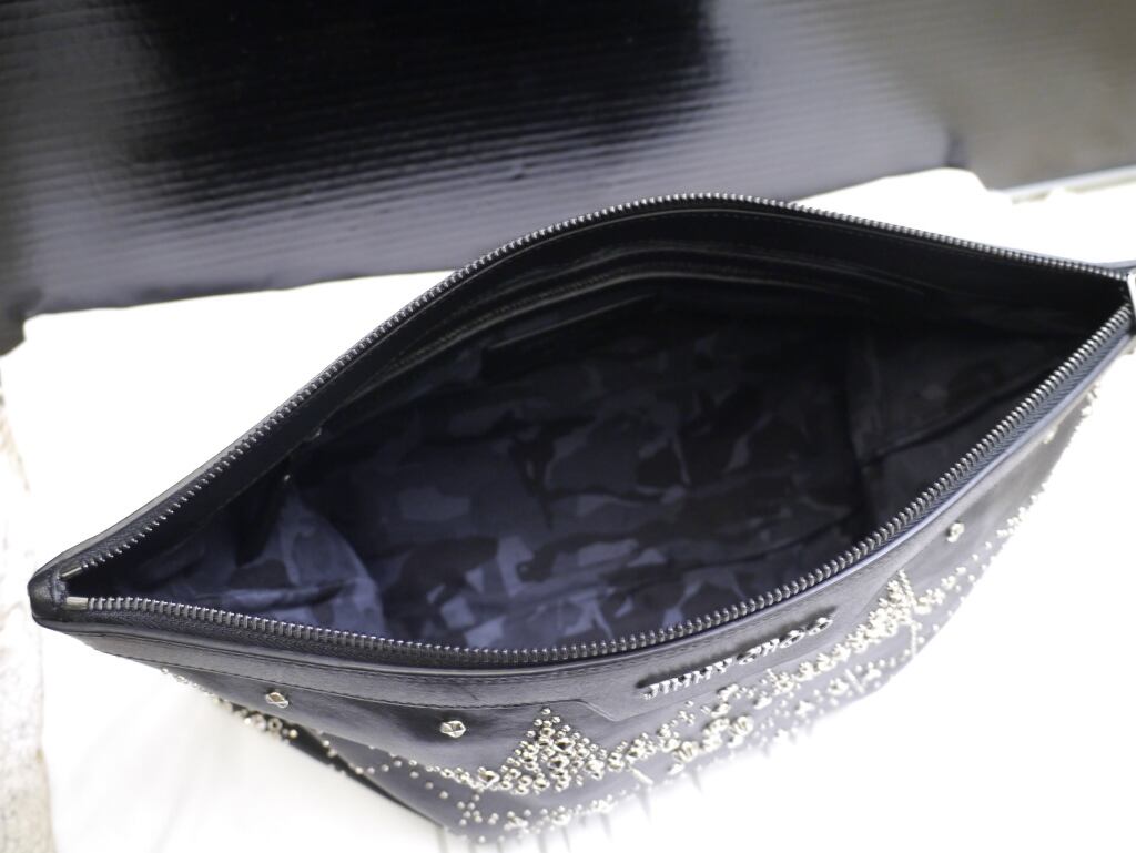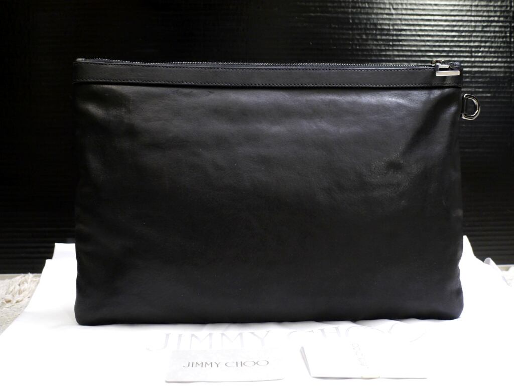 未使用★JIMMY CHOO ジミーチュウ DEREK デレク A4対応 マルチスタッズ クラッチ バッグ ドキュメントケース 黒★ 使い勝手の良いサイズ感
