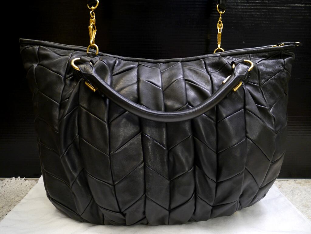 可愛らしいデザインの多いmiumiuのバッグにおいてはとてもシンプルなモデルですが、柔らかいナッパレザーにキルティングステッチを施したさりげなく個性的なデザインです。