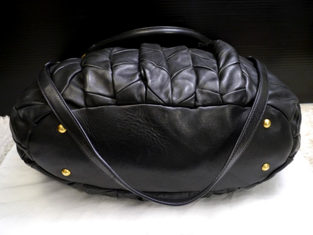 美品18万★miumiu ミュウミュウ キルティングデザイン 大容量 ハンドショルダー2way クロスボディ ミニボストン型 ナッパレザー バッグ 黒