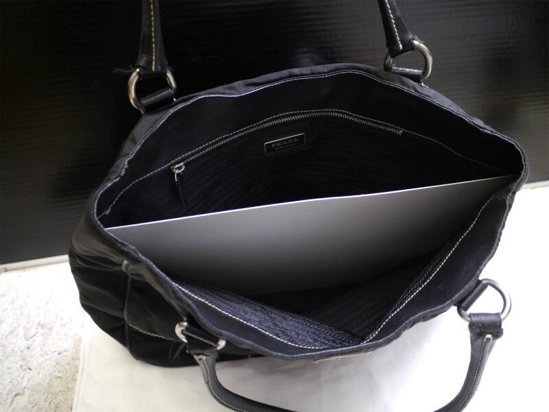 ◆PRADA プラダ A4対応 ビジネス可 ナイロンxレザー切替 トート ハンド バッグ 黒◆ タブレット等も入れやすいビジネス対応の秀逸モデル♪