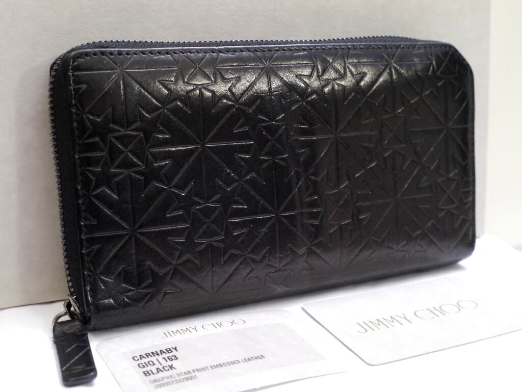 2017★JIMMY CHOO ジミーチュウ CARNABY カーナビー スターエンボス ラウンドジップ レザー 長財布 黒★ ☆エンボスが主張する定番ライン♪