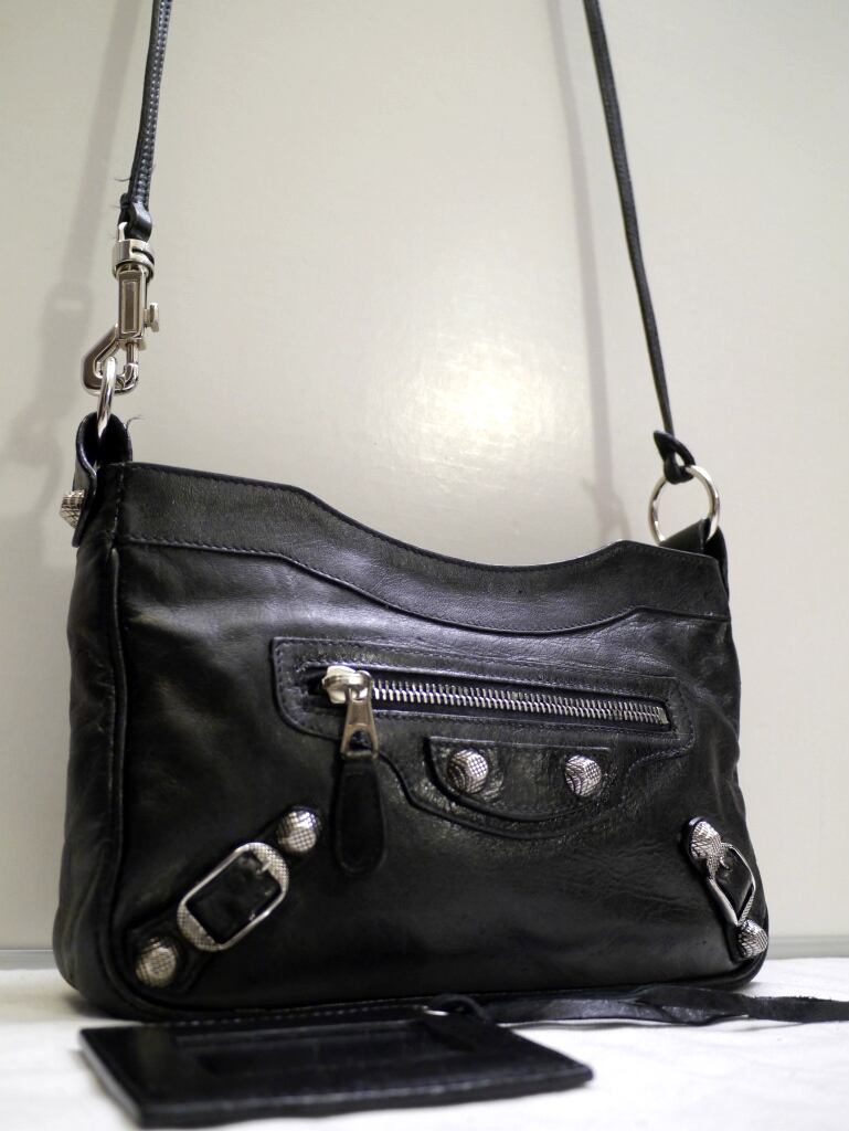 美品◆BALENCIAGA バレンシアガ 男女可 ジャイアントヒップ クロスボディ レザー ショルダー バッグ黒◆ シルバーのジャイアントスタッズ♪