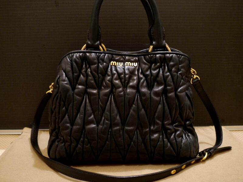 ★miumiuミュウミュウ マトラッセ 2way ギャザー レザー バッグ 黒★