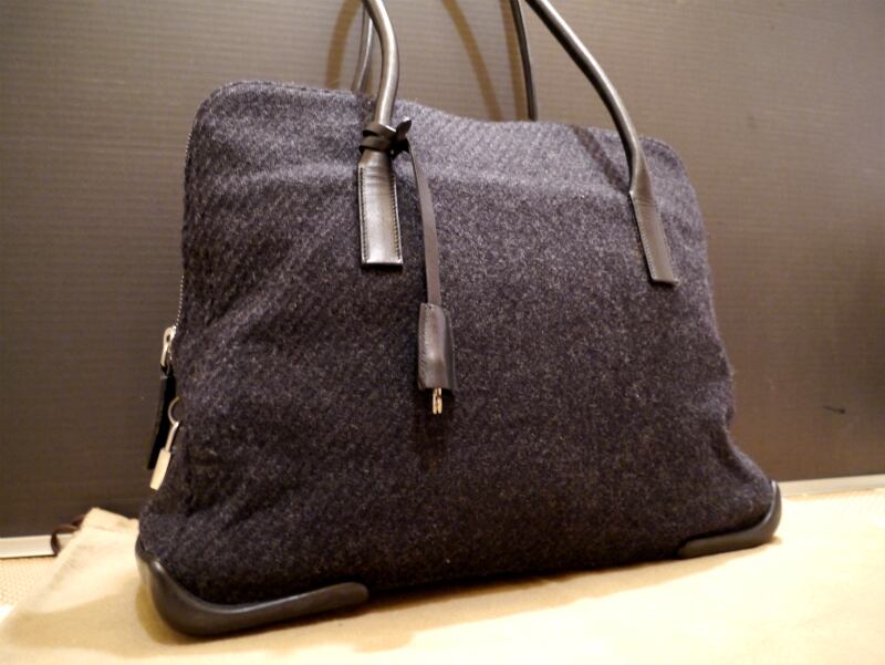 PRADA(プラダ) ウールxレザー素材 カデナデザイン トートバッグです。
