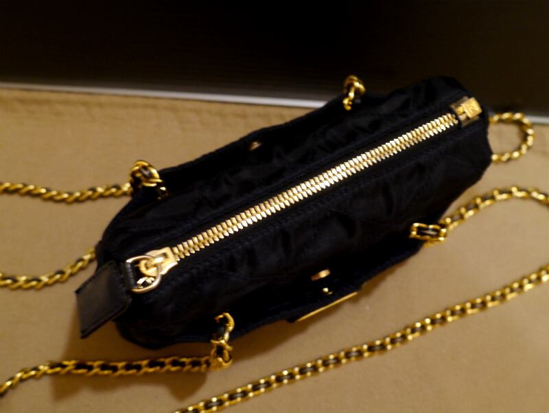 PRADA定番のナイロンバッグですが、こちらはゴールドのダブルチェーン仕様にキルティング調のデザインでなかなか見かけない貴重なモデルです。