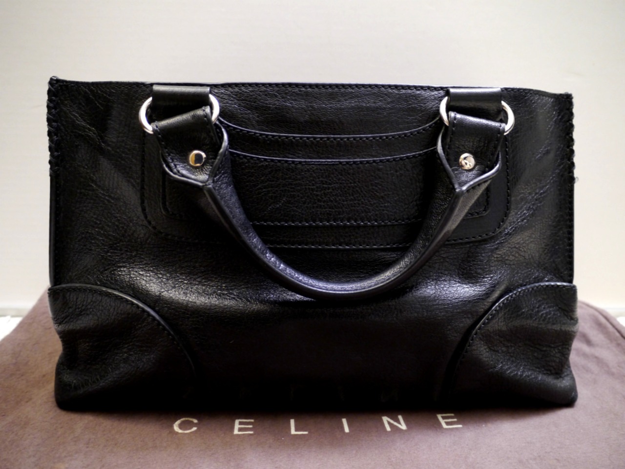 レア美品◆CELINE セリーヌ ブギー オルロフ フラップデザイン レザー トート ハンド バッグ 黒◆ ブギーの希少なオルロフチャームモデル♪
