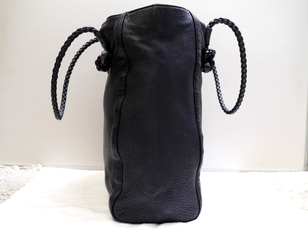 レア◆GUCCI グッチ 大容量 ユニセックス A4対応 イントレハンドルデザイン レザー トート バッグ黒◆ ボストンバッグ並みの大容量モデル♪