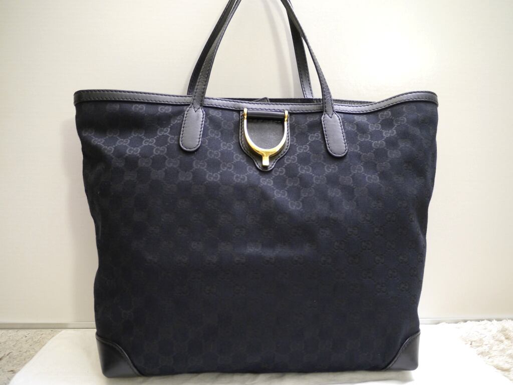 GUCCI(グッチ) GG柄 ゴールドチャーム キャンバス x レザー切替 トート ハンド バッグです。