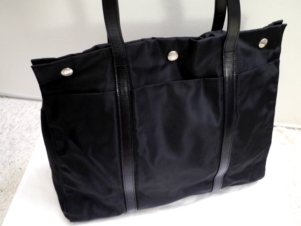 レア美品◆PRADA プラダ A4対応 ビジネス可 ナイロンxサフィアーノレザー トート バッグ 黒◆ 通勤・通学にも便利なA4書類対応の万能トート