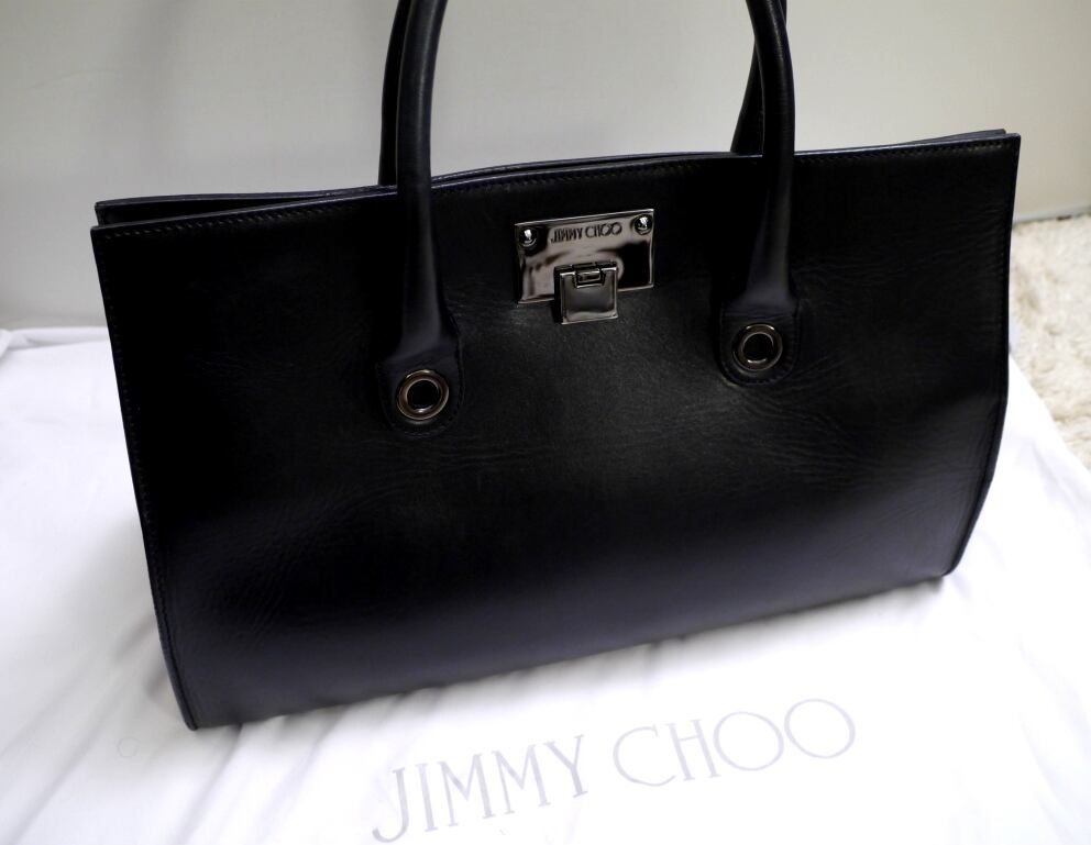 美品2016AW★JIMMY CHOO ジミーチュウ RILEY ライリー LARGE ビジネス対応モデル レザーxスエード トート バッグ 黒★ 1番人気のブラック♪